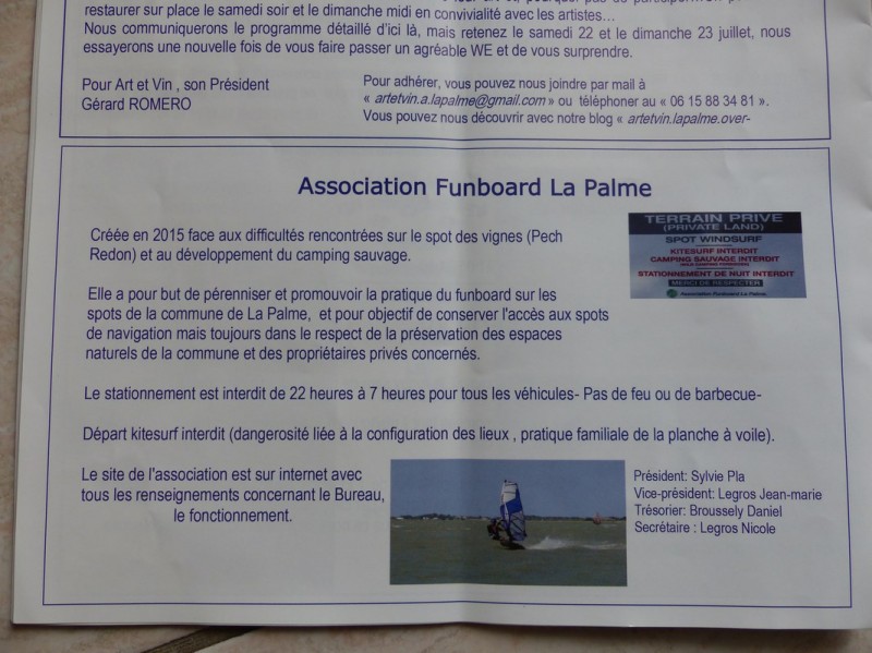 Une action de panneautage sera effectuée pour mentionner l’existence de l’association « FUNBOARD LA PALME » qui entretient et gère ce spot.